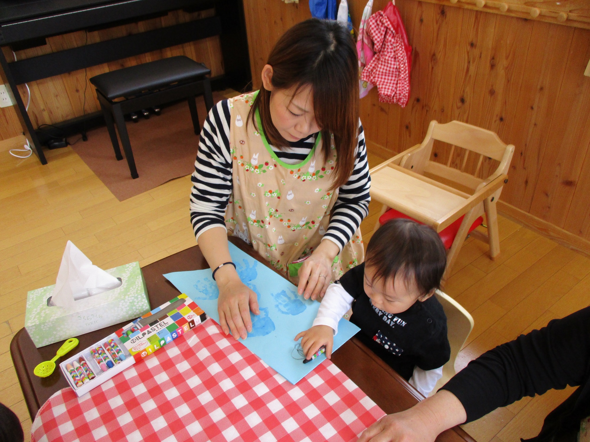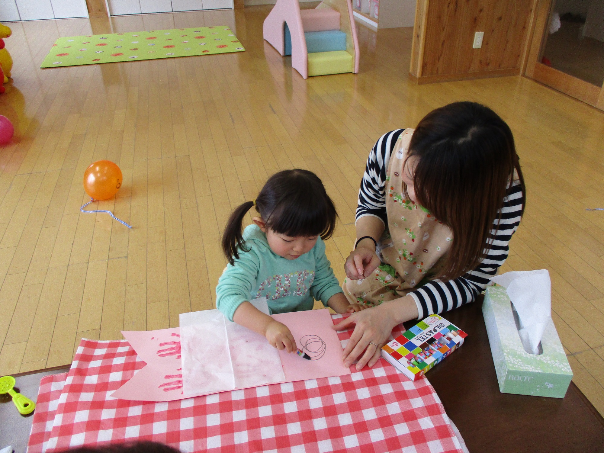 大好きなお母さんのために、絵を描いたり手形を押したり